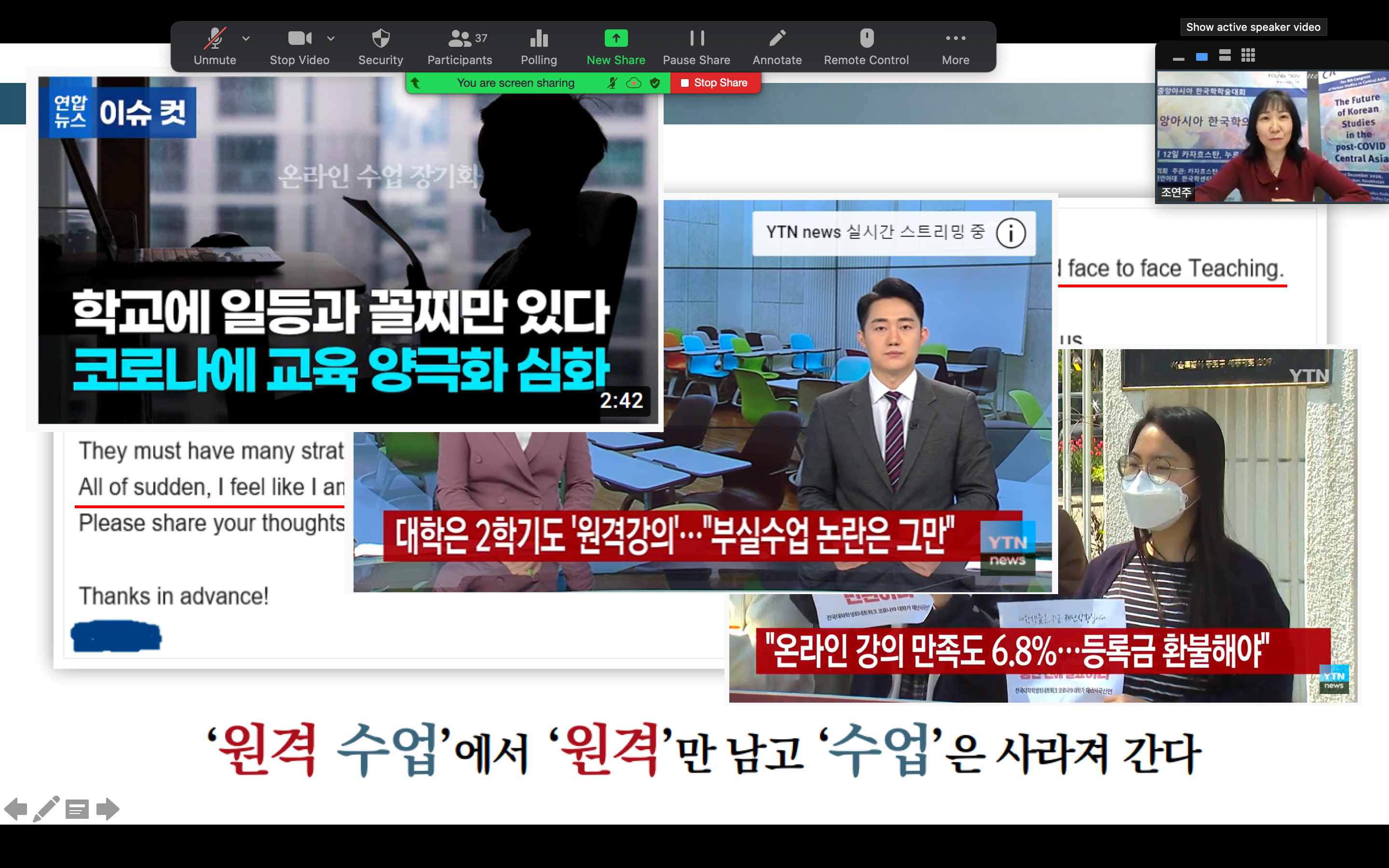 학술대회는 박 넬리 교수(중앙아 한교협 회장)의 환영사, 구홍석 대사(주카자흐스탄 대한민국대사관), 다니엘 퓨 학장(나자르바예프대 문리대), 임철우 소장(한국국제교류재단 모스크바사무소)의 축사로 시작되었다.